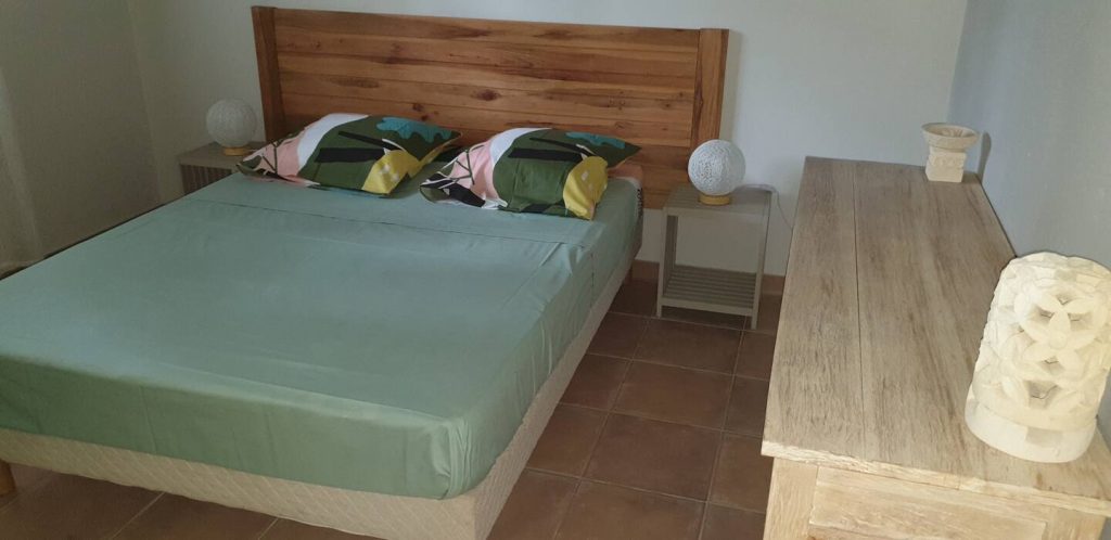 Pour la réservation, tu seras en contact avec Olivia, qui habite en métropole et gère la partie administrative. Sur place, c’est Josiane qui t’accueillera, aidée d’une dame qui s’occupe du ménage et des arrivées.