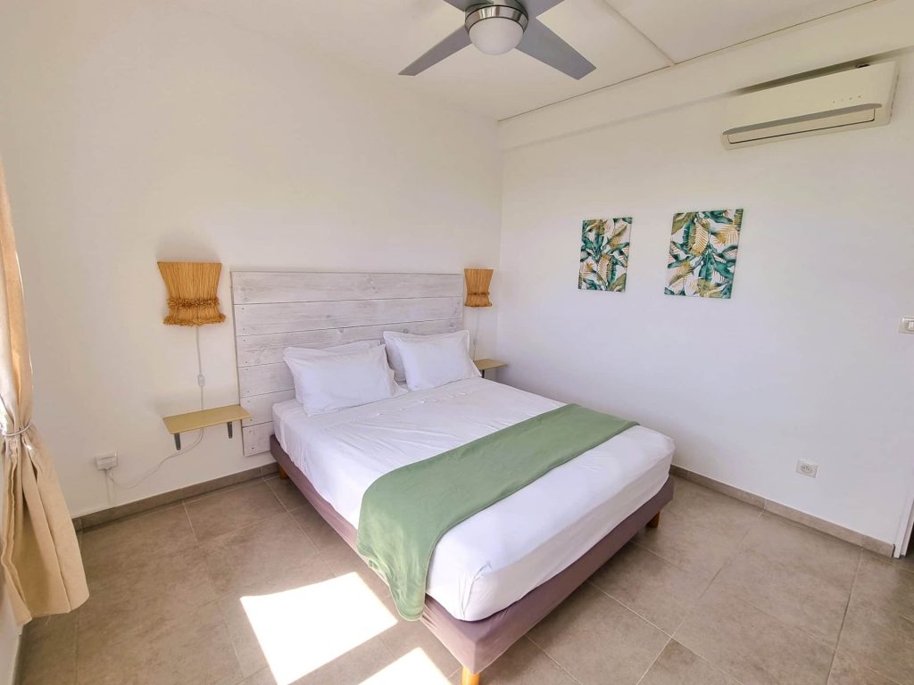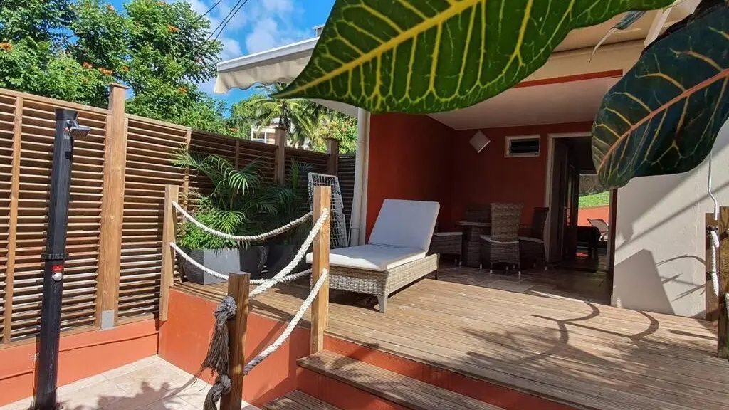 ❀ Vanille (T1 – 2 personnes) : pièce de vie climatisée, terrasse de 33 m² avec vue mer.