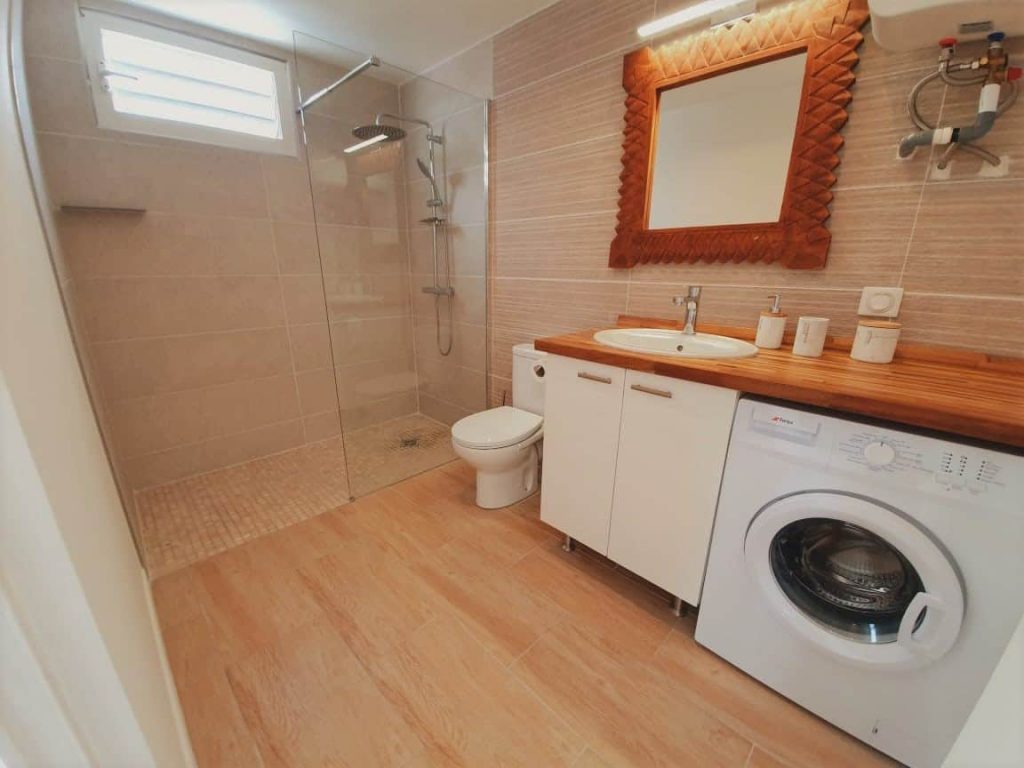 Tous les logements ont un accès à une piscine au sel de 9×5 m, un jardin tropical luxuriant, et une buanderie commune pour le côté pratique (machine à laver, jeux de plage, plancha… tout pour un séjour sans souci).